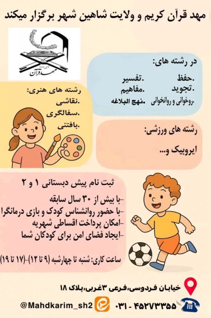 موسسه مهدقرآن کریم و ولایت شاهین شهر برگزار میکند